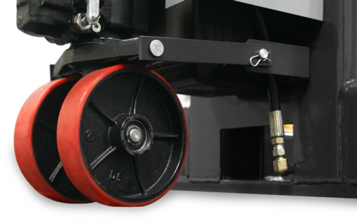 - Tandem 8” diameter polyurethane covered steel wheels with sealed roller bearings easily roll over dirt and debris