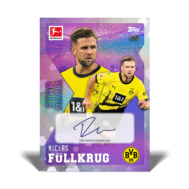 Bundesliga Summer Signings 2023/24 Set Bundesliga Summer Signings On-Demand returns for the 2023/24 season. Look out for Star Signings, Rising Stars, Rookies and, for the first time, Dual Signing cards! 60 Cards in the set Each box includes 6 packs of 5 cards including 2 guaranteed numbered parallel card. Autograph cards…